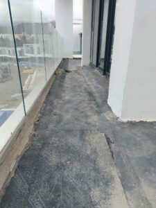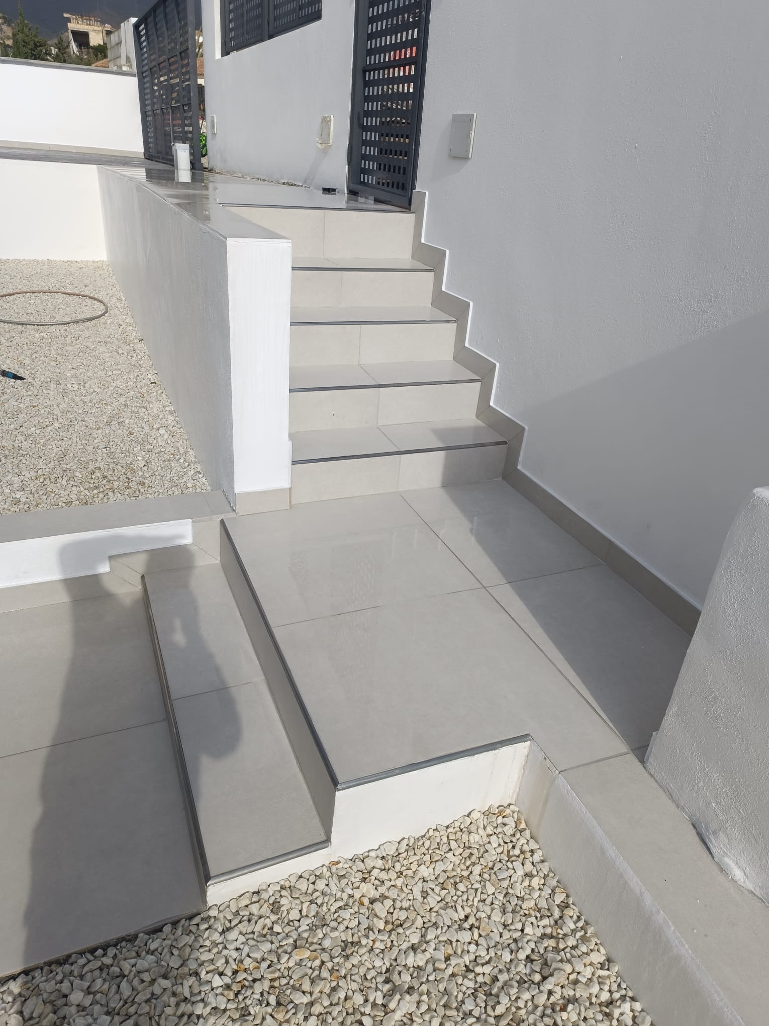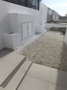 Aménagement complet avec réalisation cour parterre carrelages et local technique.
